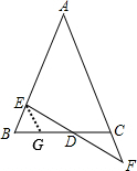 分析:作EG∥AC交BC于G,就可以得出∠EGB=∠ACB,∠DBF=∠EGF,∠F=∠GED,就可以得出BE=EG,△FCD≌△EGD,就可以得出CF=EG,进一步得出结论.