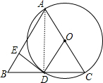 分析 (1)连结AD,如图,根据圆周角定理,由AC为直径得到∠ADC=90°,则利用等腰三角形的性质得BD=CD,于是可判断OD为△ABC的中位线,得到OD∥AB,根据平行线的性质易得OD⊥DE,则可根据切线的判定定理判断DE为⊙O的切线;