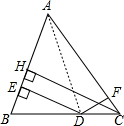 ∴S△ABD=$\frac{1}{2}$AB•DE,S△ACD=$\frac{1}{2}$AC•DF,S△ABC=$\frac{1}{2}$AB•CH,