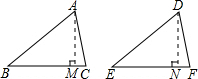 分析:过A作AM⊥BC于M,过D作DN⊥EF于N,根据AAS可证明△ABM≌△DEN,可得AM=EN,然后根据HL可证明△AMC≌△DNF,可得∠C=∠F,然后根据AAS可证得△ABC≌△DEF.