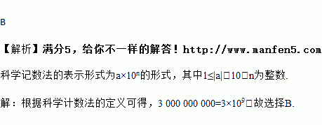 据统计,2018年全国春节运输人数约为3 000 000 000人,将3 000 000 000用科学记数法表示为( )
