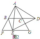 (2)由△ABC和△DE都是等边三角形得到∠ACB=∠BAC=60°,由△ABE≌△ADC得到∠ABE=∠ACD=60°,则∠ABE=∠BAC,根据平行线的判定得到BE∥AC,加上EG∥BC,于是根据平行四边形的判定方法得到四边形BCGE为平行四边形;与(1)一样可证得△ABE≌△ADC.