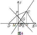②当0<t<$\sqrt{3}$时,如图4,过点F,C作GM⊥DE,CN⊥OB,![]()