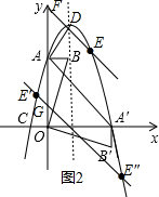 (3)如图2,易得直线AA'的解析式为y=-x+3,利用三角形面积公式,利用△AA′D和△AA′E的面积相等可判断直线DE∥AA′,则可设直线DE的解析式为y=-x+q,接着把D(1,4)代入求出q得到直线DE的解析式为y=-x+5,则直线y=-x+5与y轴的交点F的坐标为(0,5),于是通过解方程组$\left\{\begin{array}{l}{y=-x+5}\\{y=-{x}^{2}+2x+3}\end{array}\right.$可得E点坐标为(2,3);然后把直线AA′向下平移2个单位所得直线解析式为y=-x+1,所以直线y=-x+1到直线AA′的距离等于直线DE到AA′的距离,设直线y=-x+1于抛物线交于点E′和E″,利用三角形面积公式可判断△AA′D、△AA′E′、△AA′E″的面积都相等,则可通过解方程组$\left\{\begin{array}{l}{y=-x+1}\\{y=-{x}^{2}+2x+3}\end{array}\right.$可确定此时E点坐标.