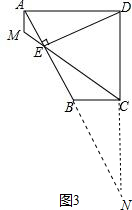 (3)延长AB、DC交于点N,如图3.由AD∥BC可得△NBC∽△NAD,根据相似三角形的性质可求出NC,由此可求出DN,然后根据勾股定理可求出AN,再运用面积法可求出DE,再根据勾股定理可求出AE,由此可求出EN.由AM∥CD可得△AEM∽△NEC,根据相似三角形的性质即可求出$\frac{ME}{CE}$.