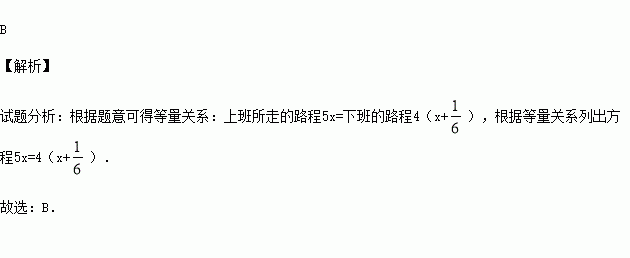 某学生从家到学校时,每小时行5千米;按原路返回家时,每小时行4千米 ,结果返回的时间比去学校的时间多花10分钟.设去学校所用时间为