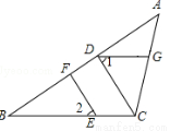 如图,在△ABC中,CD⊥AB,垂足为D,点E在BC上,EF⊥AB,垂足为F.∠1=∠2,试判断DG与BC的位置关系,并说明理由.