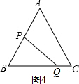 在Rt△BPQ中,cos60°=$\frac{BP}{BQ}$=$\frac{1}{2}$,即$\frac{4-t}{t}$=$\frac{1}{2}$,