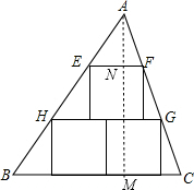 分析 作AM⊥BC于M,交EF于N,如图,先利用三角形面积公式计算出AM=40,设正方形零件的边长为x,则EF=x,MN=2x,AN=AM-MN=40-2x,再证明△AEF∽△ABC,利用相似比可得$\frac{40-2x}{40}$=$\frac{x}{30}$,然后利用比例性质求出x即可.