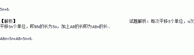 如图,长方形ABCD中,AB=6,第1次平移将长方形ABCD沿AB的方向向右平移5个单位,得到长方形A 1 B 1 C 1 D 1 ,第2次平移将长方形A 1 B 1 C 1 D 1 沿A 1 B 1 的方向向右平移5个单位,得到长方形A 2 B 2 C 2 D 2 …,第n次平移将长方形
