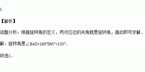 如图,将含45°的直角三角板ABC绕着点A顺时针旋转到△ADE处(点C,A,D在一条直线上),则这次旋转的旋转角为( )