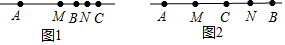 分析 分点C在点B右侧与点C在点B左侧两种情况考虑:当点C在点B右侧时,根据AB、BC的长度结合M是AC中点、N是BC的中点,可得出CM、CN的长度,将其代入MB=CM-CN中可求出MN的长度;当点C在点B左侧时,根据AB、BC的长度结合M是AC中点、N是BC的中点,可得出CM、CN的长度,将其代入MB=CM+CN中可求出MN的长度.综上即可得出结论.