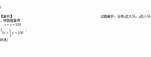 我国古代数学名著《孙子算经》中记载了一道题,大意是:有100匹马恰好拉了100片瓦,已知1匹大马能拉3片瓦, 3匹小马能拉1片瓦,问有多少匹大马、多少匹小马?若设大马有