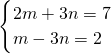 若-3x7ym-3n与2x2m+3ny2是同类项,则m,n的值分别是