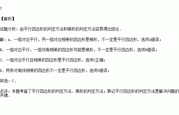 A.一组对边平行,另一组对边相等