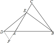 分析:过D作DF∥BC交AC的延长线于F点,根据等边三角形的性质得到∠CAB=∠ACB=60°,则∠F=60°,∠DAF=60°,得到△DAF为等边三角形,于是DA=AF=DF,易得EF=BC,根据三角形全等的判定可得到△EDF≌△BEC,即可得到结论.