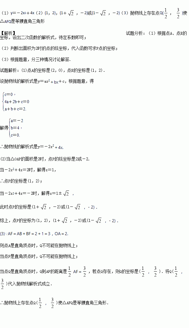(3)在抛物线上是否存在一点Q,使△AFQ是等腰直角三角形?若存在直接写出点Q的坐标;若不存在,请说明理由.