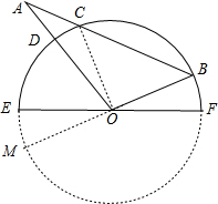 解答 解:如图,以EF为直径作半圆,延长BO交圆于M,连接OC,![]()