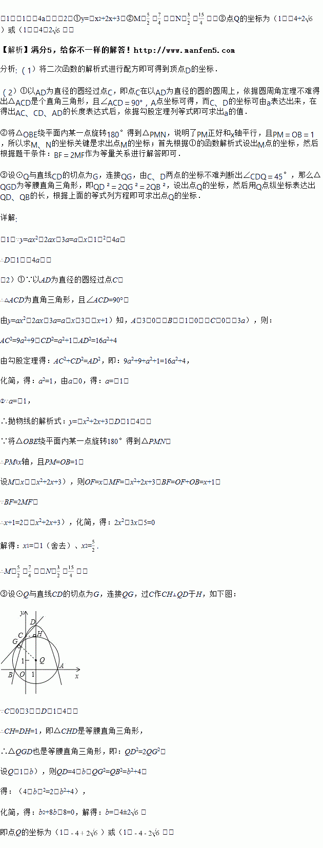 ③点Q在抛物线的对称轴上,以Q为圆心的圆过A、B两点,并且和直线CD相切,如图3,求点Q的坐标.