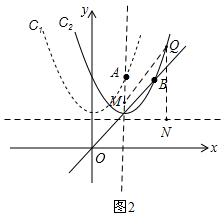 (3)设出Q点坐标,根据QM=QN,由两点间的距离公式列出等式,再结合抛物线C2的解析式,消去x,整理理成一个关于y和m的方程,而这个方程对任意的y都成立,从而确定m的取值.