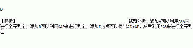 如图,点D,E分别在线段AB,AC上,CD与BE相交于O点,已知AB=AC,现添加以下的哪个条件仍不能判定△ABE≌△ACD( )