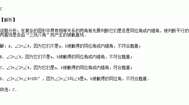 C.∠3+∠2=∠4 D.∠2+∠3+∠4=180°