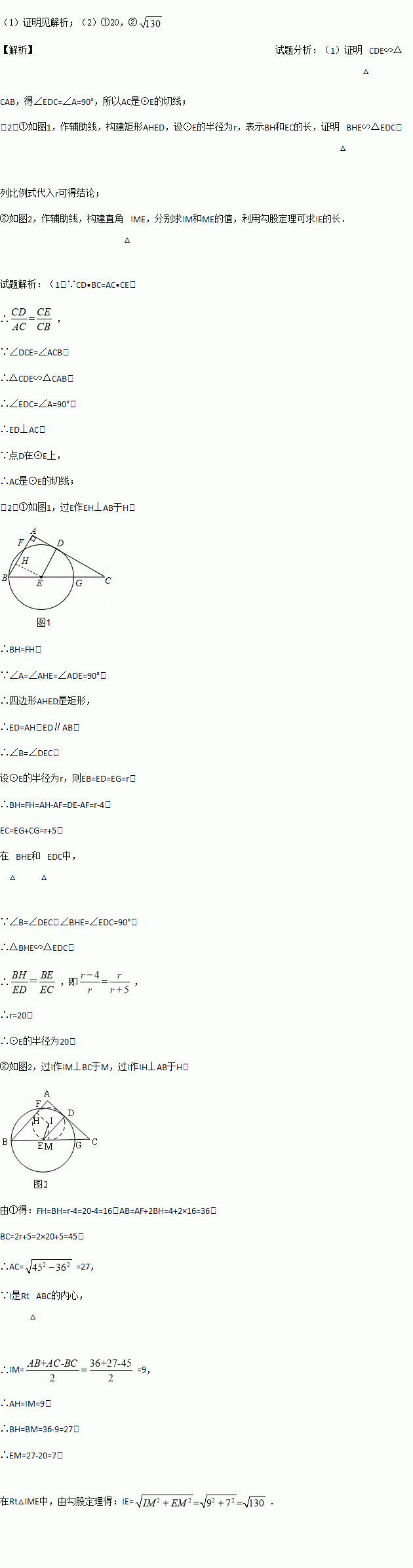 (1)求证:AC是⊙E的切线;