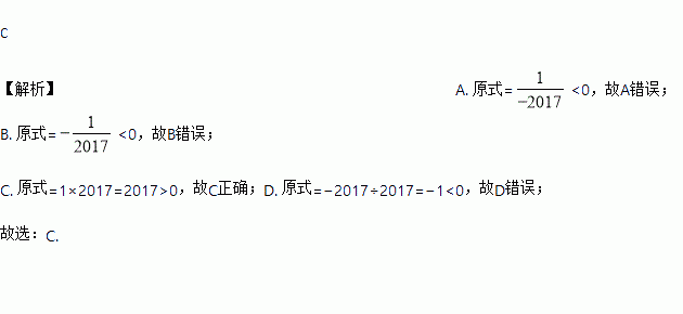 A. (-2017)-1 B. -(2017)-1 C. (-1)×(-2017) D. (-2017)÷2017