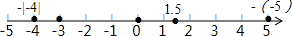 解答 解:如图所示,,故-|-4|<-3<0<1.5<-(-5).