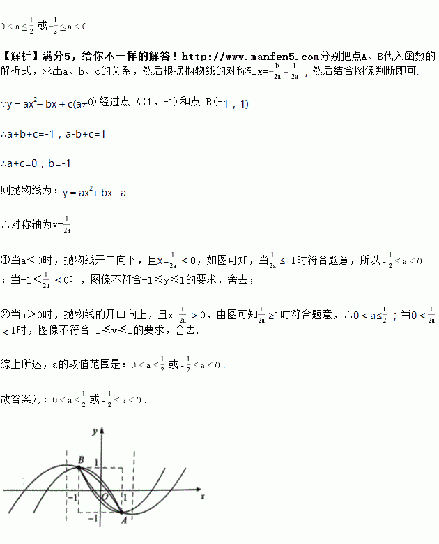对于一个函数,如果它的自变量 x 与函数值 y 满足:当?1≤x≤1 时,?1≤y≤1,则称这个函数为“闭 函数”.例如:y=x,y=?x 均是“闭函数”. 已知 y ? ax2 bx c(a?0) 是“闭函数”,且抛物线经过点 A(1,?1)和点 B(?1,1),则 a 的取值范围是______________.