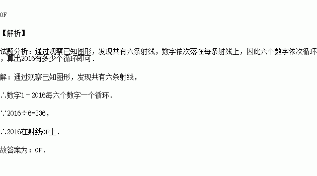 (2015秋•高阳县期末)如图,平面内有公共端点的六条射线OA,OB,OC,OD,OE,OF,从射线OA开始按逆时针方向依次在射线上写出数字1、2、3、4、5、6、7…,则数字“2016”在射线 上.