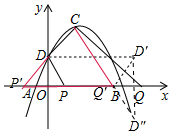 解答 解:如图,将点D向右平移4个单位得到D′,作D′关于x轴的对称点D″,连接CD″与x轴交于点Q′,此时D→P′→Q′→C→D,组成的四边形周长最小.![]()