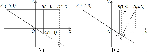 解答:由图可知,A(-5,3)、B(1,3)、C(1,-1)、D(4,3),