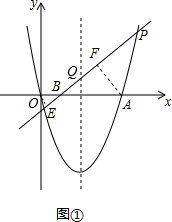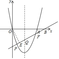 设直线PQ交x轴于点B,分别过O点,A点作PQ的垂线,垂足分别是E、F,显然当点B在OA的延长线时,S△POQ=$\frac{1}{3}$S△PAQ不成立;![]()