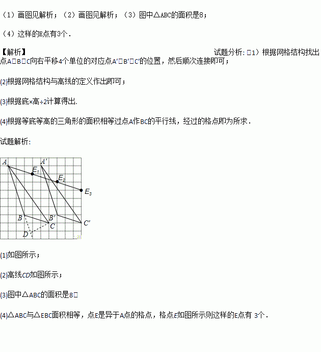 (4)△ABC与△EBC面积相等,点E是异于A点的格点,则这样的E点有 个.
