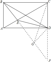 分析 延长BE交CD的延长线于点F,取EF的中点G,连接DG、CG,可得△BAE∽△FCE,根据三角形的相似得出EF和CE的关系,进而证明△ABE∽△GCE,得出∠ABE=∠ECG,证得点A、B、C、G四点共圆,根据点A、B、C、D四点共圆可得A、B、C、D、G五点共圆,得出∠BGD=∠BAD=90°,GD为EF的中垂线,进而证得:∠CDE=2∠ABE.