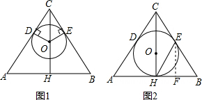 如图1,△ABC中,CA=CB,点O在高CH上,OD⊥CA于点D,OE⊥CB于点E,以O为圆心,OD为半径作⊙O.