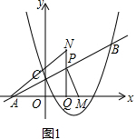 (2)把B(4,3)代入y=kx+1中,即可得到k的值,从而可求出点A的坐标,就可求出tan∠CAO=$\frac{1}{2}$(即tan∠PAQ=$\frac{1}{2}$),设PQ=m,则QA=2m,根据条件tan∠NAQ-tan∠MPQ=$\frac{1}{2}$,即可求出PN的值;