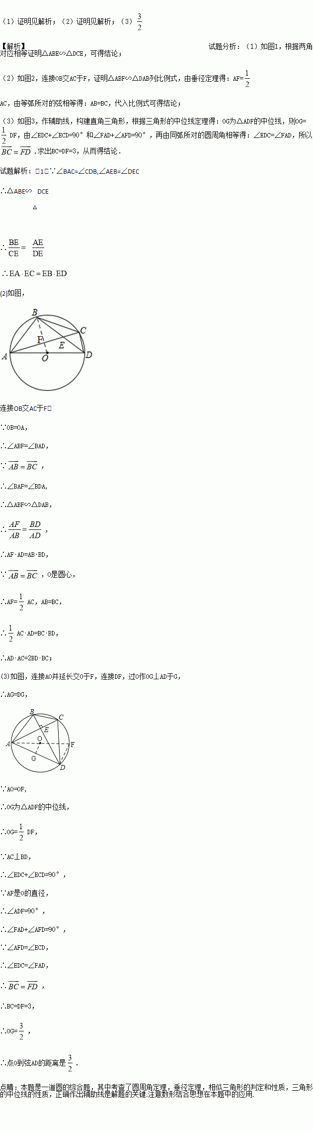 (3)如图3,若AC上BD,BC=3,求点0到弦AD的距离。