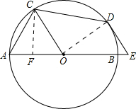 分析 (1))连接OD,根据等腰三角形的性质证得∠COD=90°,根据平行线的性质证得∠ODE=∠COD=90°,即可证得直线DE与⊙O相切;