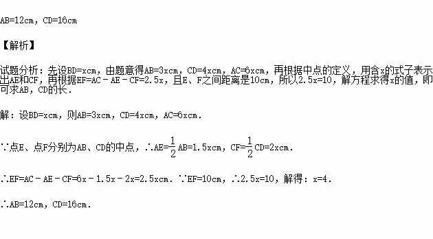 CD,线段AB、CD的中点E、F之间距离是10cm,求AB,CD的长.