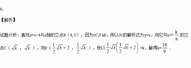 上一点,OC∥AB,连接BC交双曲线于点D,点D恰好是BC的中点,则k的值是( )