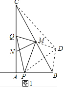 分析 (1)①通过垂直的定义、直角三角形中的两个锐角互余以及等量代换,可以证得△PBM与△QNM中的两个角对应相等,所以这两个三角形一定相似;