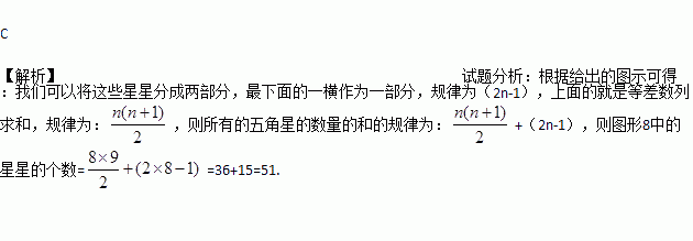 观察下列一组图形,其中图形①中共有2颗星,图形②中共有6颗星,图形③中共有 11颗星,图形④中共有17颗星,…,按此规律,图形⑧中星星的颗数是( )