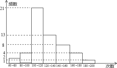£¨3£©Êý³öÌøÉþ´ÎÊýÔÚ100¡Üx£¼140·¶Î§µÄͬѧÓжàÉÙ¼´ÎªxµÄÖµ£¬ÀûÓù«Ê½$\frac{ƵÊý}{×ÜÊý}$¡Á100%¼ÆËã¼´¿É£»