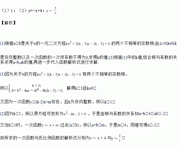 设(a,b)是一次函数y=(k-2)x+m与反比例函数