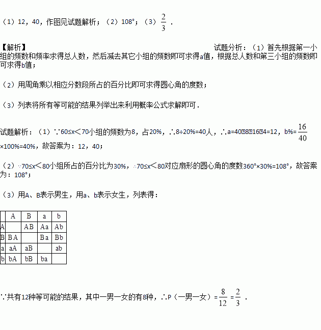 (1)表中的a= ,b= (2)请补全频数分布直方图;