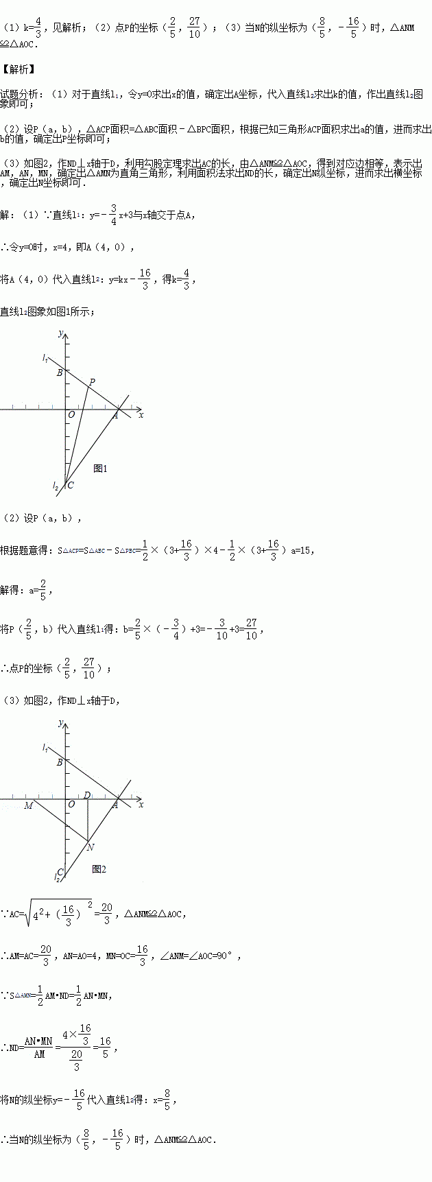 (3)若点M、N分别是x轴上、线段AC上的动点(点M不与点O重合),是否存在点M、N,使得△ANM≌△AOC?若存在,请求出N点的坐标;若不存在,请说明理由.