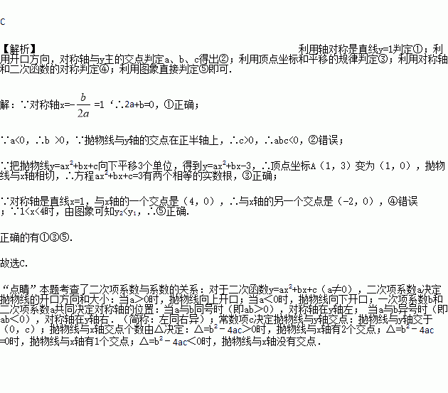 如图是抛物线y1=ax2+bx+c(a≠0)图象的一部分,抛物线的顶点坐标A(1,3),与x轴的一个交点B(4,0),直线y2=mx+n(m≠0)与抛物线交于A,B两点,下列结论: