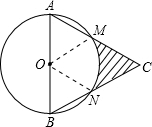 分析 连接OM,ON,阴影部分面积等于三角形ABC面积减去三角形AOM面积减去三角形BON面积,再减去扇形MON面积,求出即可.